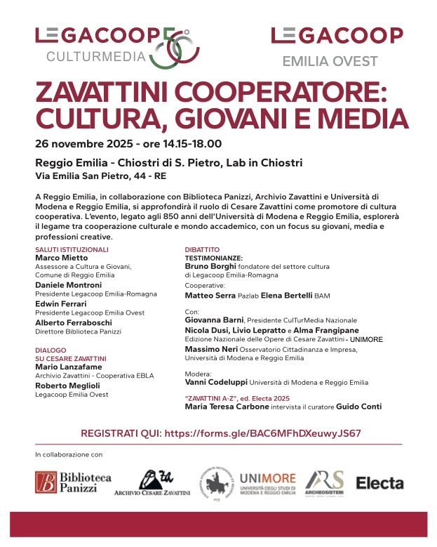 “Zavattini cooperatore: cultura, giovani e media”, un appuntamento dedicato a